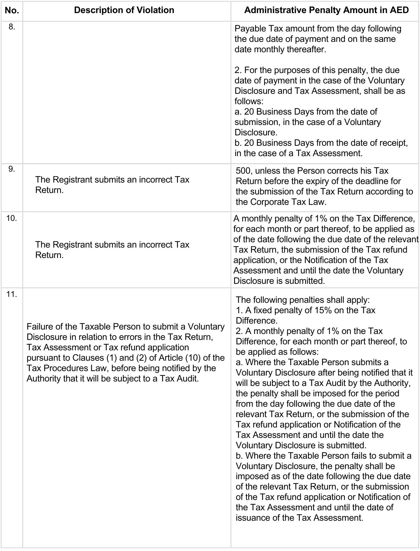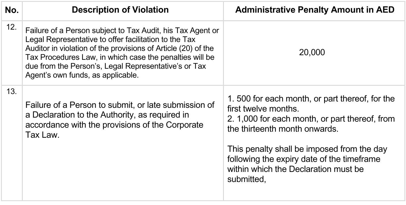 The penalties range from a minimum of AED 5,000 to a maximum of AED 1 million, depending on the severity of the violation. In addition, the Federal Tax Authority may impose additional penalties, such as interest on unpaid taxes or the denial of tax deductions or exemptions.